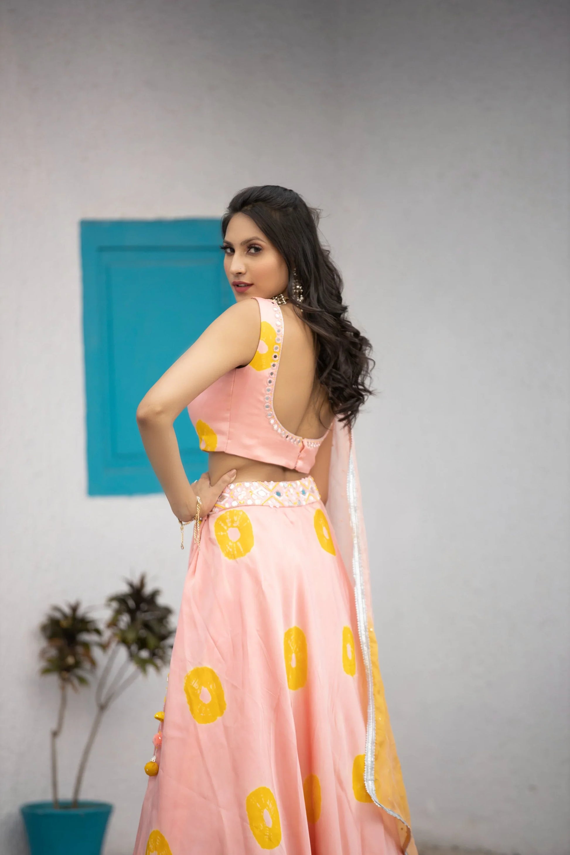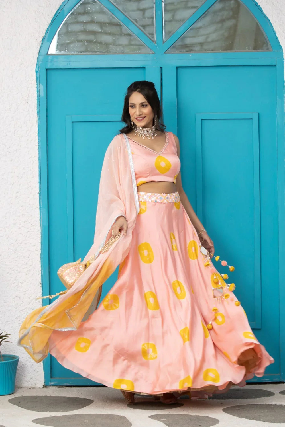 - Lehenga with a shaded dupatta and a mirror work blouse
